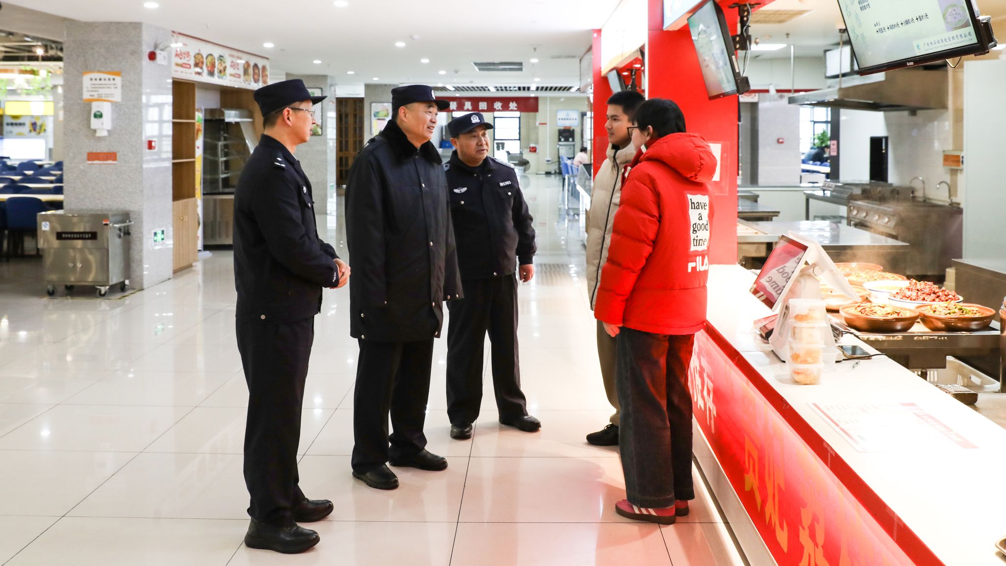 1月20日,合肥出现强降雪天气,为保障极端天气下校园安全稳定,学院党委书记张耀恒,党委委员、纪委书记方卫胜率安全管理处负责同志,深入学院超市、食堂、教学楼等重点区域开展安全检查,并看望在校学生和培训学员。