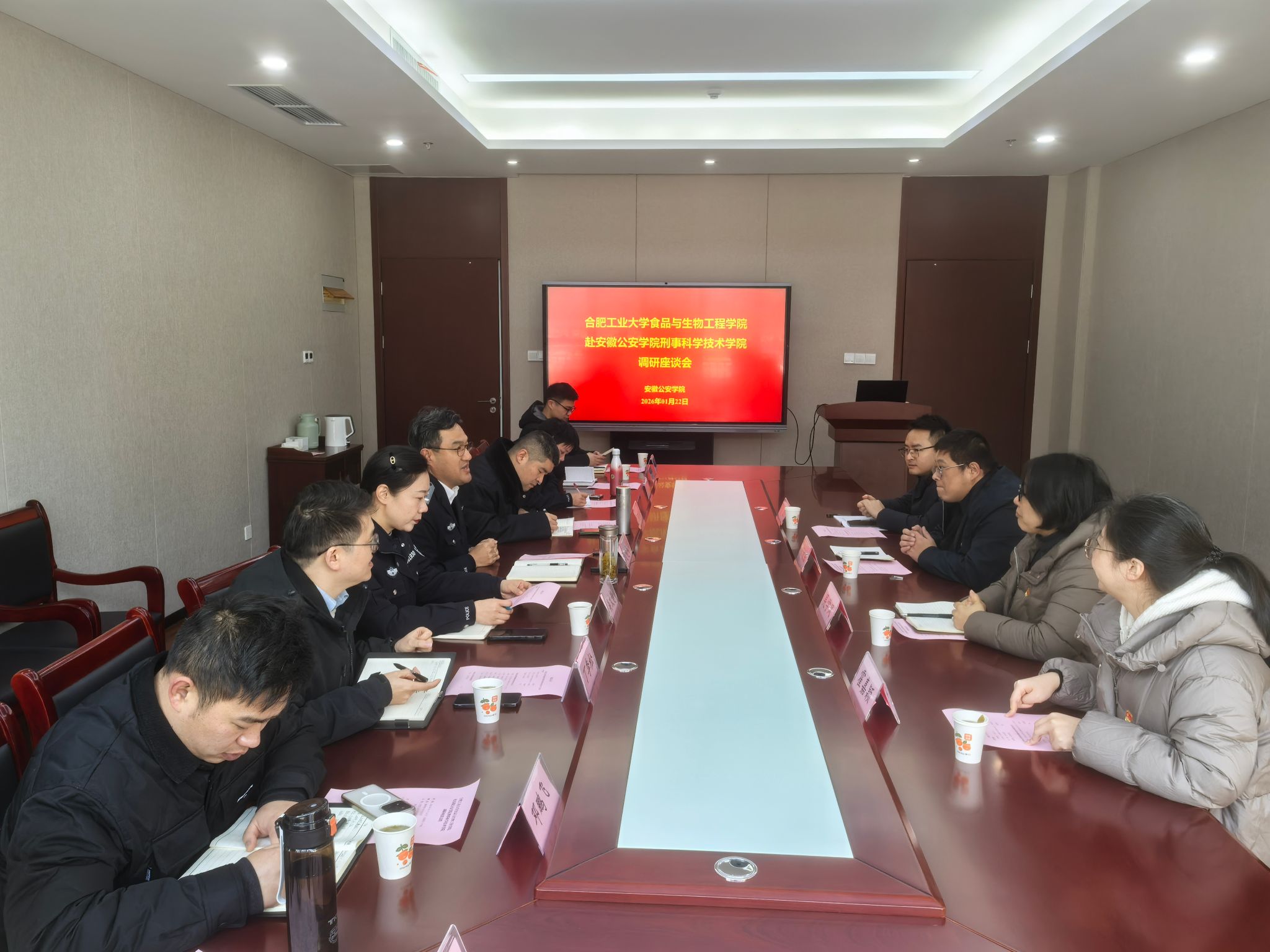 此次调研座谈活动,不仅加深了合肥工业大学食品科学与工程系与安徽公安学院刑事科学技术学院之间的相互了解,更为双方突破学科壁垒、推动优势互补打开了新思路。双方均表示,将以此次交流为起点,建立常态化沟通机制,进一步细化合作方向,为培养复合型高素质创新人才、服务更高水平的平安中国和健康中国贡献力量。