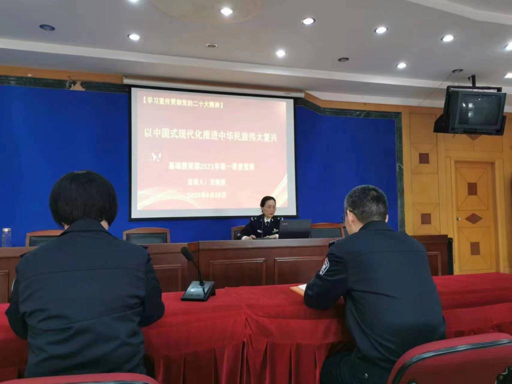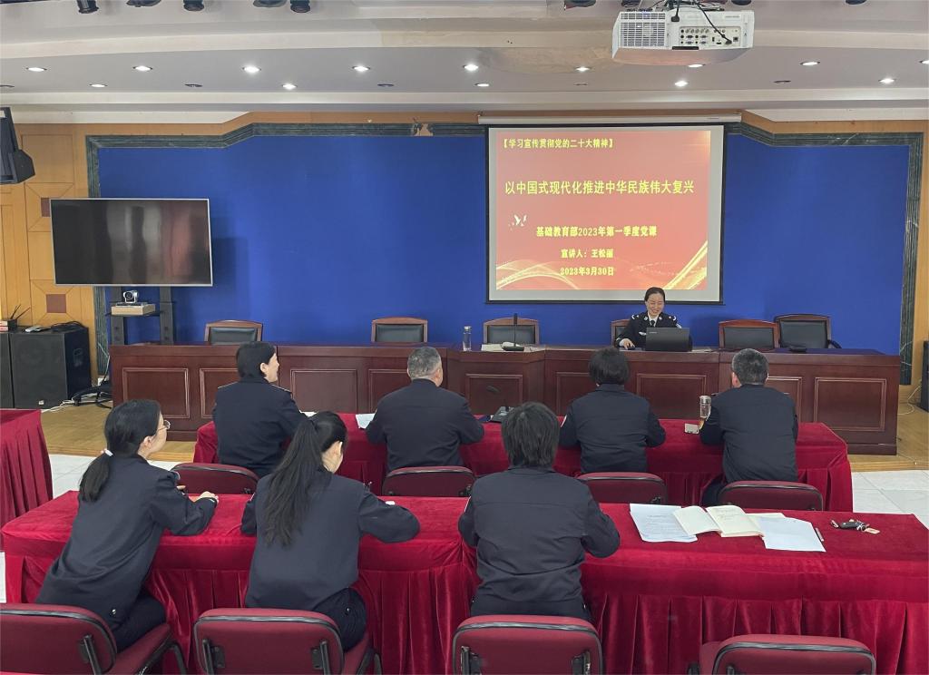 3月30日,基础部党支部书记王松丽同志在行政楼五楼会议室为支部上第一季度党课,解读党的二十大报告。院党委委员、安徽省教育研究院院长舒和润同志出席活动,基础部没有授课任务的党员同志参加活动。