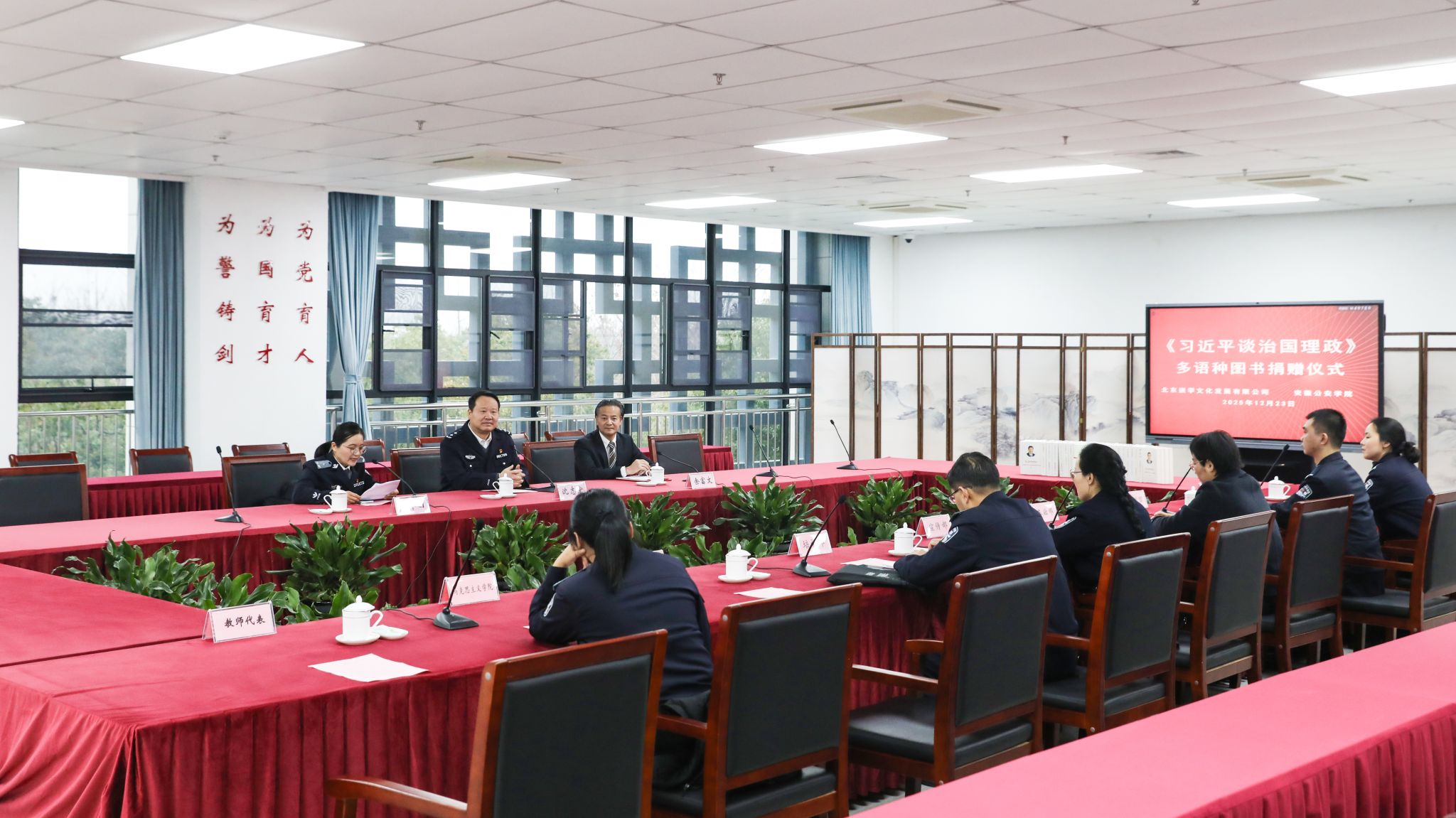 余富文在致辞中指出,此次捐赠旨在支持安徽公安学院进一步强化理论武装、推动智库建设、创新思政工作。他希望以此为契机,双方加强协作,共同讲好中国故事、中国共产党故事,为实现中华民族伟大复兴作出应有的贡献!